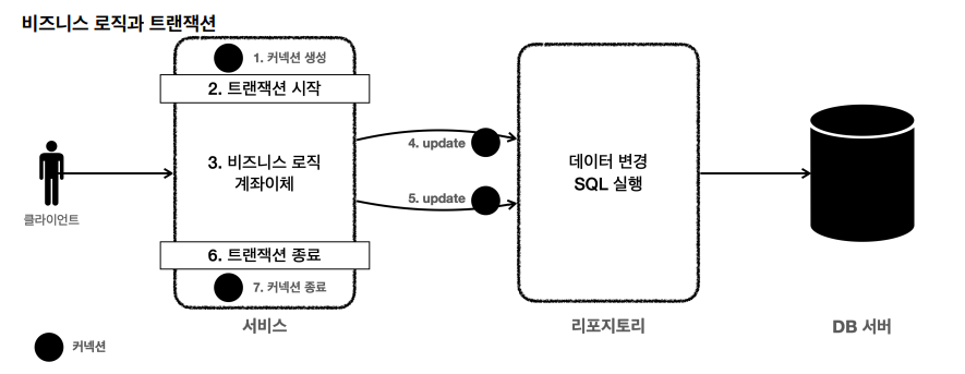 - 트랜잭션을 시작하기 위해 서비스 계층에서 커넥션을 생성하고 트랜잭션 커밋 후 종료해야 함